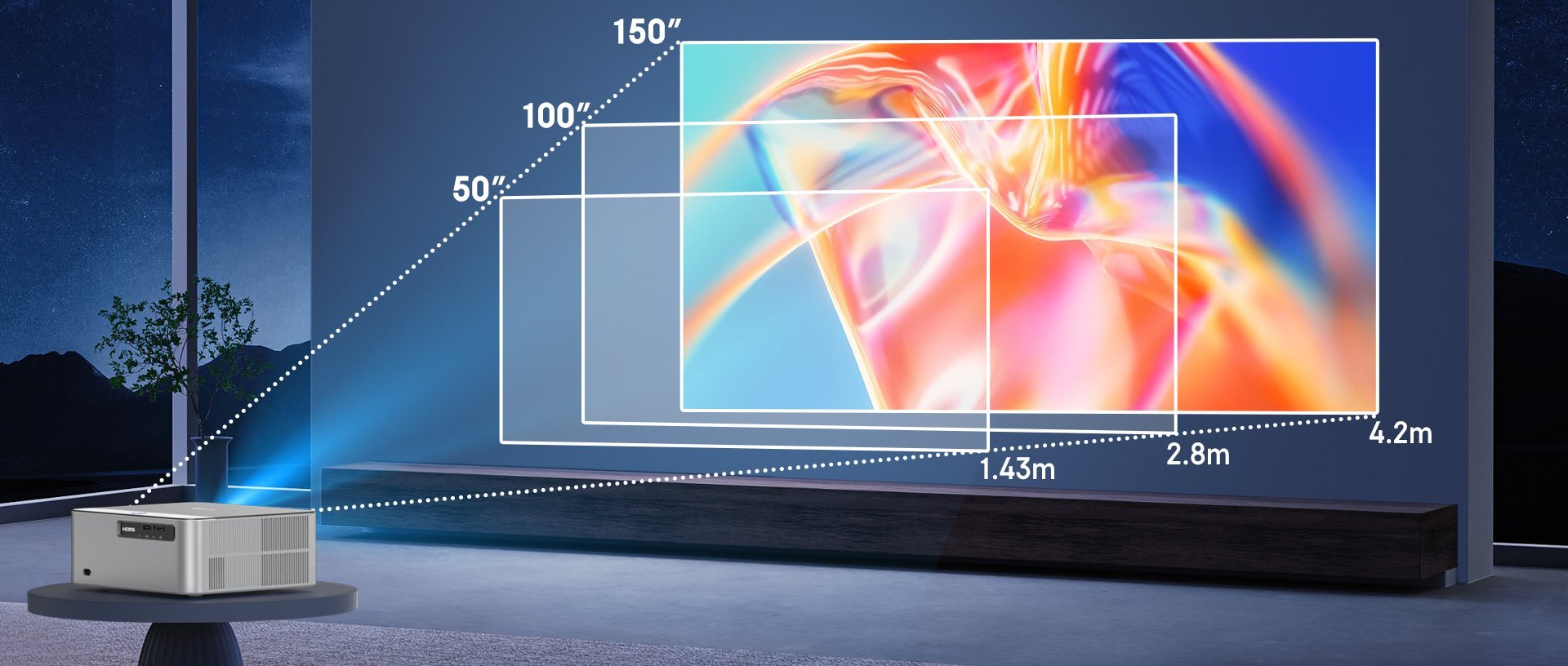 FunFlix P7 projeksiyon cihazı duvarda yada perdede hızlıca otomatik fokus ve düzeltme yaparak saniyeler içinde izlemeye hazır hale gelir, engellerden kaçınma ve perdeye sığdırma akıllı özellikleriyle evinizin yada ofisinizin her odasında kullanılabilir ve zorluğu aşmaya hazırdır.