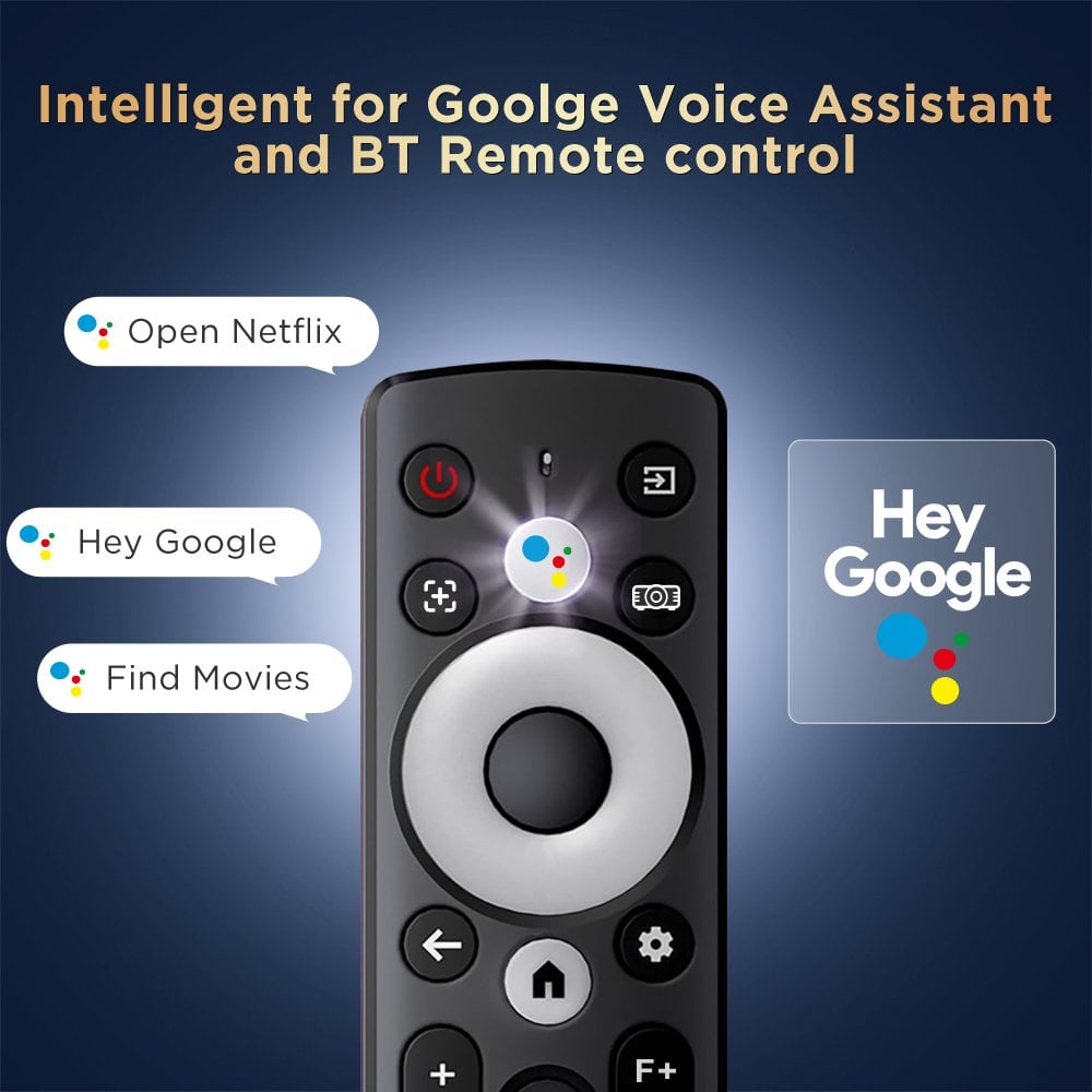 FunFlix P7 RF/Bluetooth kumandası ile odanın her yerinden kısıtlama olmadan uzaktan kumanda özelliği sunar. Sesli komut özelliği Türkçe dil desteği ile gelir ve konuşarak arama yapmanızı sağlar.